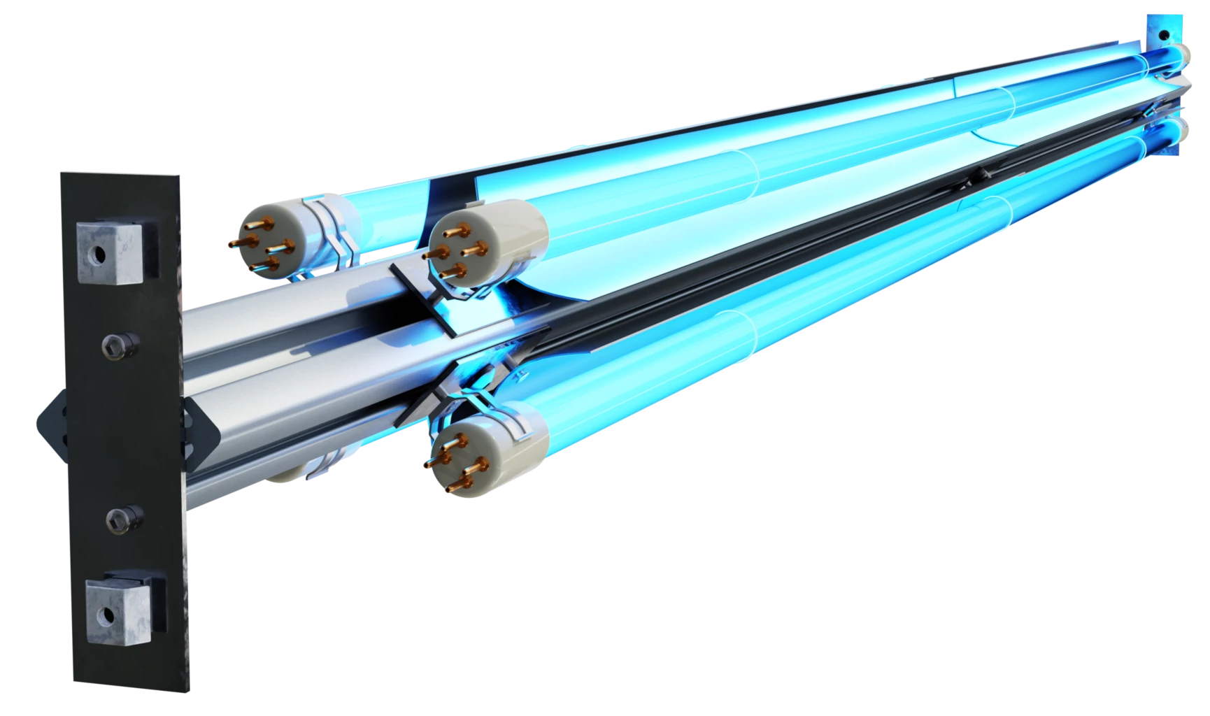 The Respicaire BioClean QUAD™ uses Ultraviolet Germicidal Irradiation (UVGI) to disinfect moving air inside HVAC ducts. This technology emits potent UVC rays at 254 nanometers, the optimal germicidal wavelength. UVC light works by penetrating cell membranes and destroying the DNA of microorganisms, which stops them from reproducing and makes them harmless.The system’s linear design increases dwell time, meaning air stays in contact with the UVC light longer for better disinfection results. Unlike most products on the market, the BioClean QUAD™ includes parabolic reflectors that eliminate UVC waste and boost purification power by 50%. This design creates a 360-degree control zone that bathes recirculated air in purifying light as it passes through the HVAC system.UVGI technology has been trusted for decades in hospitals, manufacturing plants, medical clinics, universities, and other high-occupancy buildings. Bacteria and viruses, including coronavirus and many of its variants, have shown high susceptibility to UVC disinfection when given appropriate doses within the germicidal range.